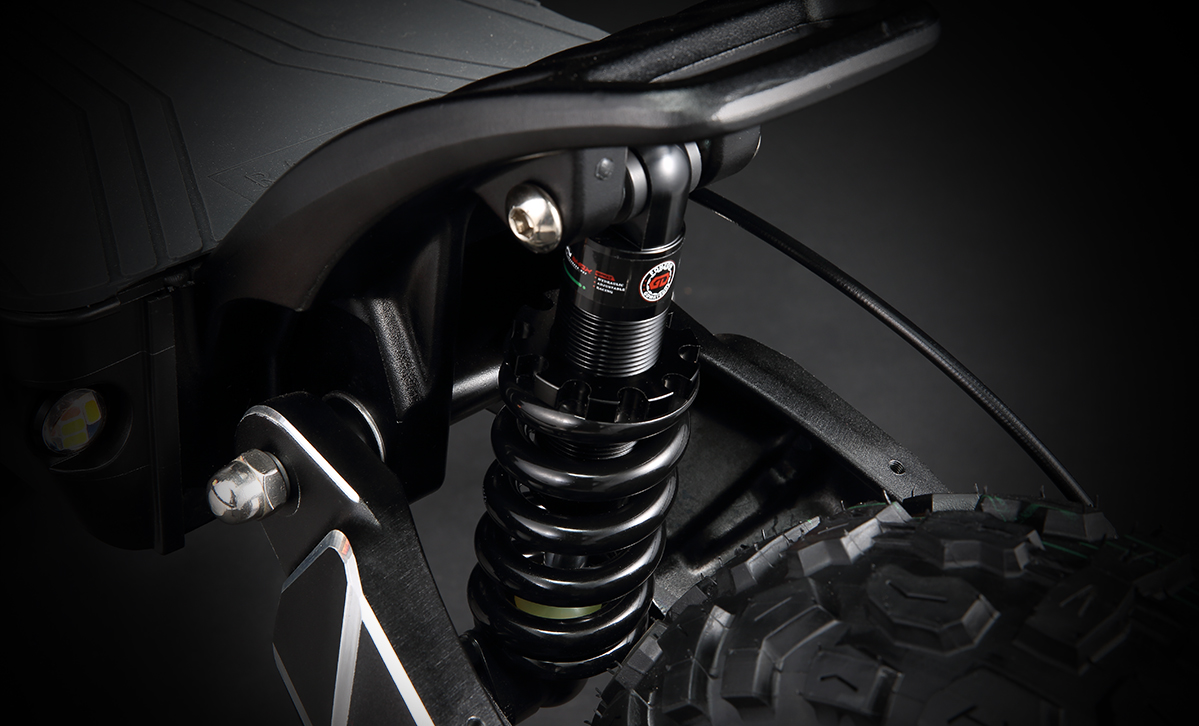 Raptor se pyšní systémem odpružení využívajícím hydraulické tlumiče. Přední kolo je vybaveno tlumičem o průměru 135 mm a zadní kolo tlumičem o průměru 165 mm. Maximální nosnost je 150 kg.