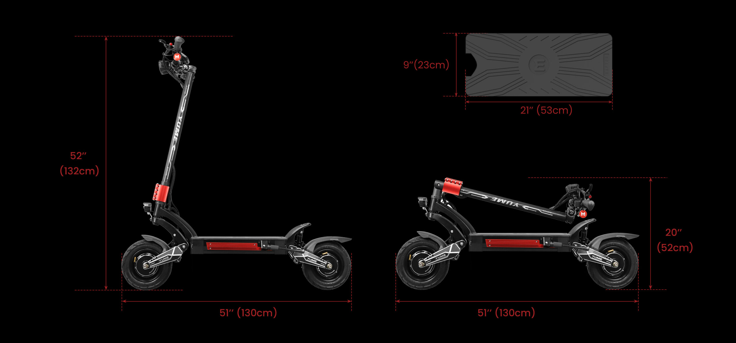Zcela nový YUME Raptor vyniká jako výkonná elektrická koloběžka střední velikosti s 11palcovými pneumatikami a motory s dvojitým pohonem, které nabízejí vynikající výkon 6000 W. S maximální rychlostí 80 km/h a fantastickým dojezdem 96 km na plné nabití (s volitelným akumulátorem Samsung) je Raptor rychlý a extrémně agilní.